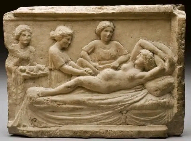 Thus, Agnodice made her mark in history as the first Greek female doctor, physician and gynecologist. This plaque depicting Agnodice at work was excavated at Ostia, Italy.
