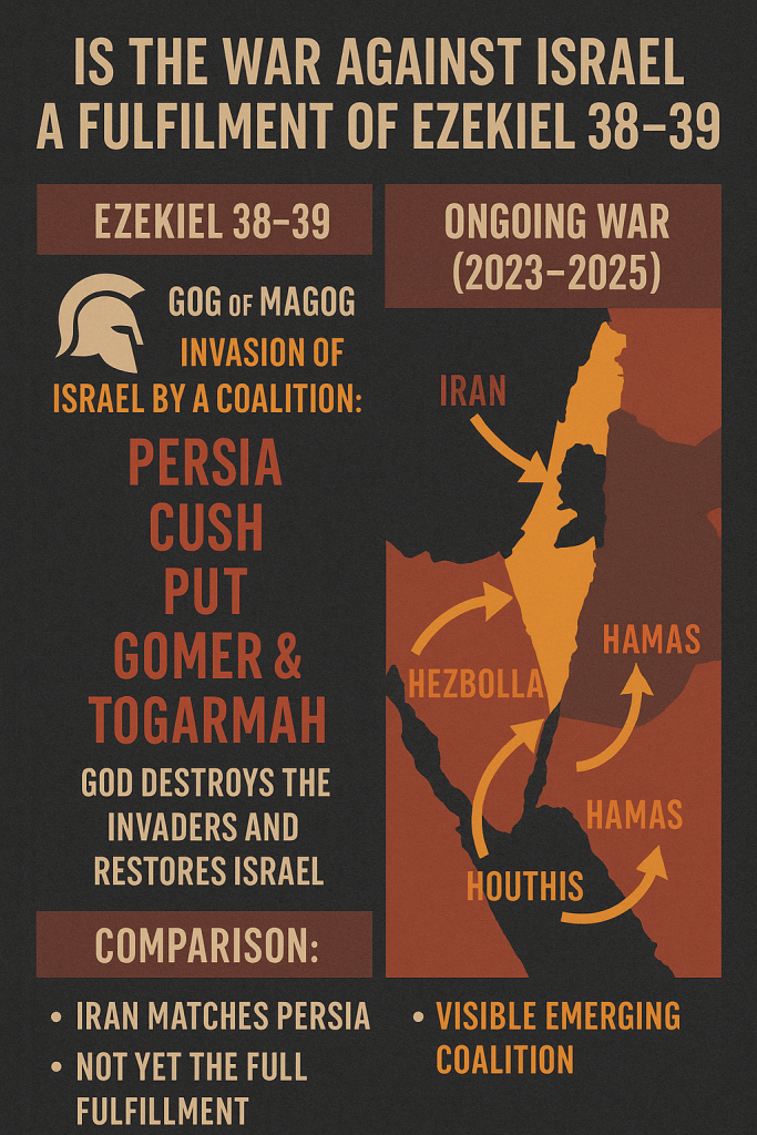 The war against Israel today may not be the literal fulfillment of Ezekiel 38–39, but it likely represents a prophetic prelude—a shadow, a rehearsal, or the beginning of alignments foretold in Scripture.