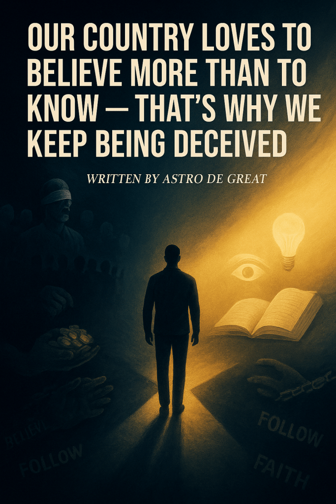 It’s not that we are foolish far from it. We are emotional, hopeful, spiritual, and trusting. But those same qualities that make us warm as a people have also become the tools used against us. Politicians, pastors, and public figures understand this weakness too well. They don’t give us truth they give us hopeful lies. They tell us what we want to hear, not what we need to know.